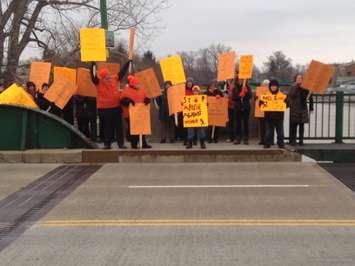 Dozens of area residents dressed in orange joined members of the local Zonta Club on the Third St. Bridge in Chatham over the noon hour to draw attention to the issue.