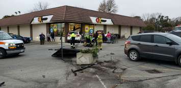 The GT Xpress on Chatham Street South is closed Monday as a result of the crash, which took place at around 4 p.m. Sunday afternoon, but the store's manager is hoping the building will be able to re-open later this week.