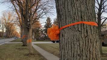 Homeowners on Victoria Avenue that are not happy with the plan and the lack of communication have put orange ribbons around trees on their property.