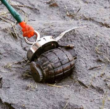 Police closed the bridge in Thamesville while they investigated and sent pictures of the grenade to the Canadian Military for identification. Officers with the Bomb Disposal Unit identified the item as an M36 grenade and members from Camp Borden attended the scene to retrieve it.