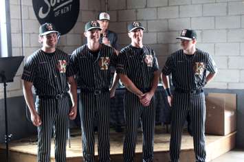 Chatham-Kent Barnstormers unveil team uniform on Thursday, April 18, 2024 at Sons of Kent Brewing Company in Chatham, Ont. (Photo by Matt Weverink)