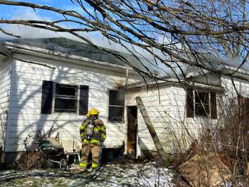 Smoke coming from Ridgetown home damaged by fire on December 14, 2024. (Photo courtesy of Chatham-Kent Fire Department)