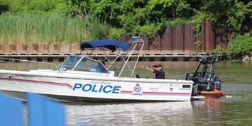 Chatham-Kent police and other first responders on the Thames River just west of the Third Street Bridge in Chatham. June 23, 2025. (Photo by Matt Weverink)