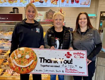 On Tuesday, the owner of Dresden's Tim Hortons location presented Dresden Sidestreets Youth Centre with a cheque for $2,782.