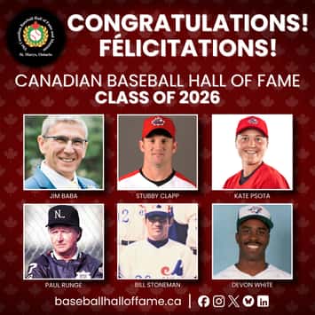 "We look forward to celebrating the outstanding careers of this year’s inductees in St. Marys this June," said Canadian Baseball Hall of Fame and Museum Director of Operations Scott Crawford. "Each of them, in their own way, has made a tremendous impact on the game of baseball in our country."