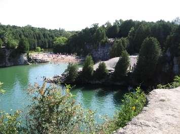 The two-acre former limestone quarry features cliffs up to 12 metres high, a small sandy beach, a one-kilometre trail, and picnic areas.