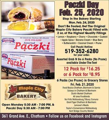 "Want to add a great big thanks to my staff and to the people of Chatham-Kent. They made this another great Paczki Day and we look forward to next year," he added.