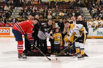 Former NHLer Jon Sim, who twice scored 50 goals with the Sarnia Sting, was the special guest at a ceremony prior to the game to unveil the team's 50-Goal-Club banner that also includes the names of Ivan Novoseltsev, Steven Stamkos and Reid Boucher.