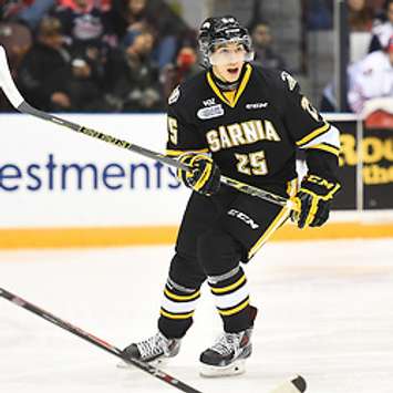 Sarnia got on the board four minutes into the third when Nikita Korostelev banged in a rebound. Jordan Kyrou drew an assist, his third in two games, with the other helper going to Kevin Spinozzi.