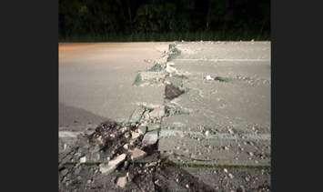 Further details were not immediately available, but photos sent to Sarnia News Today show significant damage to the roadway.