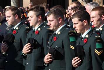 Members of the Canadian military stand in honour of fallen Canadian soldiers at the cenotaph in Windsor, November 11, 2014. (photo by Mike Vlasveld)
