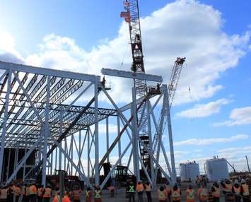 A "topping out" ceremony was held Tuesday at the site to commemorate the last structural steel beam to be raised at the 213 acre site.