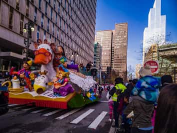 The parade features 29 award-winning floats, six giant balloons, and nine marching bands.